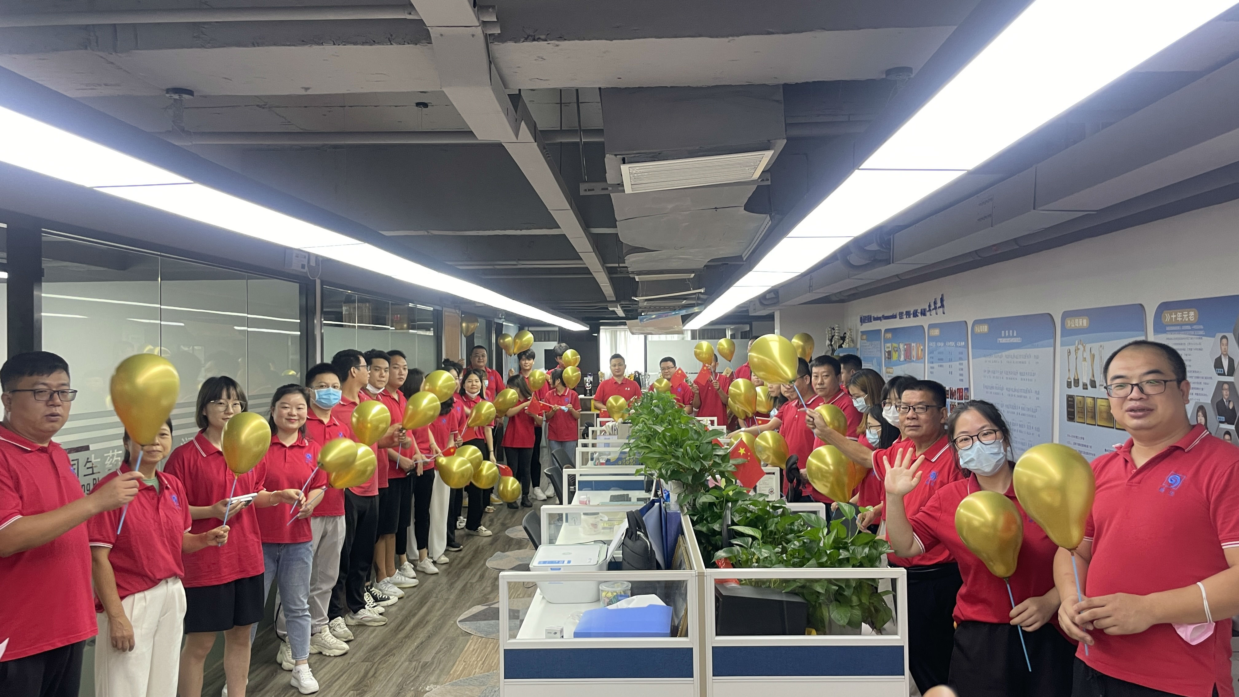 紧接着,党员代表为大家献唱红歌《没有共产党就没有新中国》。每一句歌词、每一段旋律仿佛把我们拉到了革命年代,时刻提醒我们要珍惜今日的美好生活。一首红歌已大大提高了活动的氛围,接下来全体员工共同献唱《东方之珠》《歌唱祖国》《今天是你的生日》等歌曲。大家摆动着手中的小红旗和气球,整个活动氛围已达到高潮。
